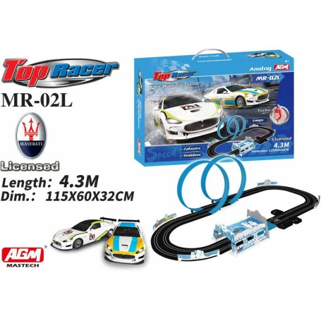 AGM Top Racer 1:64 Starter Set. 4.5M of track with 2 cars. LED lights and loop racers. Stainless Steel track. Assorted styles