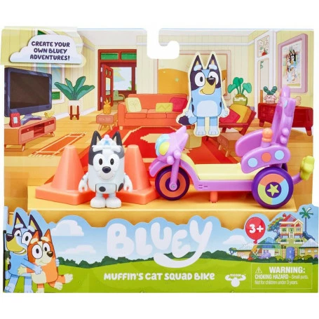 Bring the fun and imaginative play of Bluey home with Bluey’s fun range of Vehicle and Figure Packs. Each Bluey Figure & Vehicle Pack includes one 2.5″ toy Figure and vehicle accessory to ride on plus other fun play accessories. Each Figure has moving arms and body and are the right size for Preschool hands to move and play with. Collect all the Vehicle Playsets including Muffin’s Cat Squad Bike, Bluey’s Unipony Ride and the Bluey & Bingo Scooter Fun Accessory Pack! Children will love to recreate some of the most memorable moments from the show with these adorable toys!