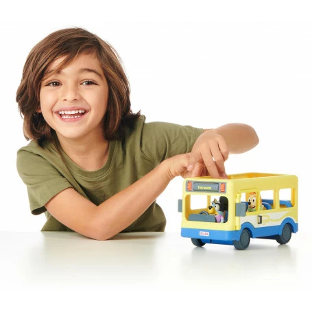 Bluey’s Bus is the best way to go on an adventure around Bluey’s Hometown Brisbane! Bluey’s Bus comes with 2 play Figures – Bluey and Bingo wearing their exclusive Chunky Chimp T-Shirts. Place them into the Bus. Bluey’s Bus has enough seating to carry up to six 2.5-3″ Figures. First select the Bus’s destination on the front. Where will we go? The Beach, the Dump or the Creek? This great free-wheeling Bus even comes with a Wackadoo Extraroos (Bus Pass)! Bring the fun and imaginative play of Bluey and her friends home with this fun toy Playset. Both 2.5 -3″ Figures in this Pack are articulated and have moving arms and body. They are just the right size for pre-school hands to move and play with. Children and toddlers will love to recreate some of the most memorable moments from the show with this adorable Bluey toy! What’s Inside: 1 x Vehicle 2 x Figures 1 x Play Pieces