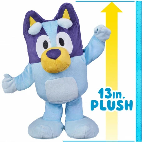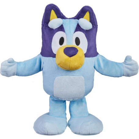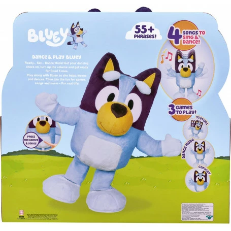 Ready… Set… Dance Mode! Get your dancing shoes on, turn up the volume and get ready for good times! Play along with Bluey as she hops, waves and dances! Then join the fun for games, songs and more – For real life! Dance And Play Bluey is a fun animated Plush toy with over 55 phrases! Dance and sing along with Bluey to 4 different songs! See if you can beat Bluey at 3 of her favorite games! Play Statues, Dance Mode and Copycat with her! Dance and Play Bluey is full of awesome moves! She can hop in one leg, dance and wave her arms in the air! Just press her tummy and and join in with Bluey! Bluey is the perfect size for cuddles. Made with deluxe fabrics and featuring embroidered details, this super-soft plush doubles as a cuddly toy for game-time or storytime. Collect all of Bluey’s Plush friends and create your own Bluey adventures! What’s inside: 1 x Plush